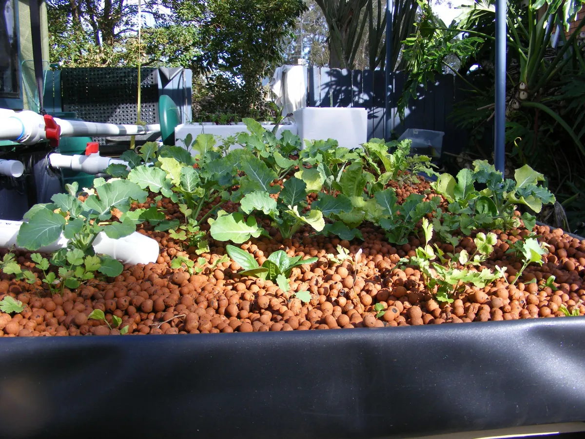 GROWBED ~ this is where the veggies are in a separate container with a ‘growing media’ like expanded clay or gravel. In this type of design, you can grow almost anything depending on the size ~ even root crops! It is more expensive though (buy expanded clay second hand, your back pocket will thank you).